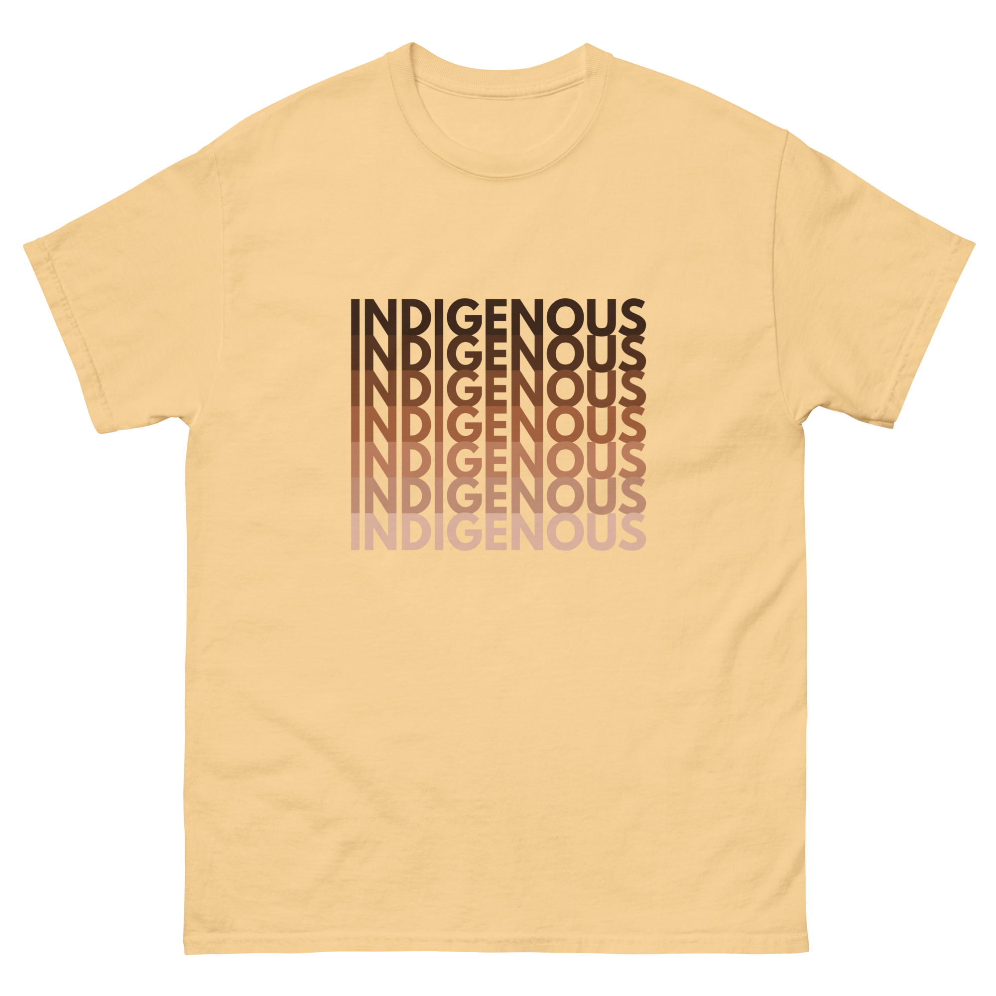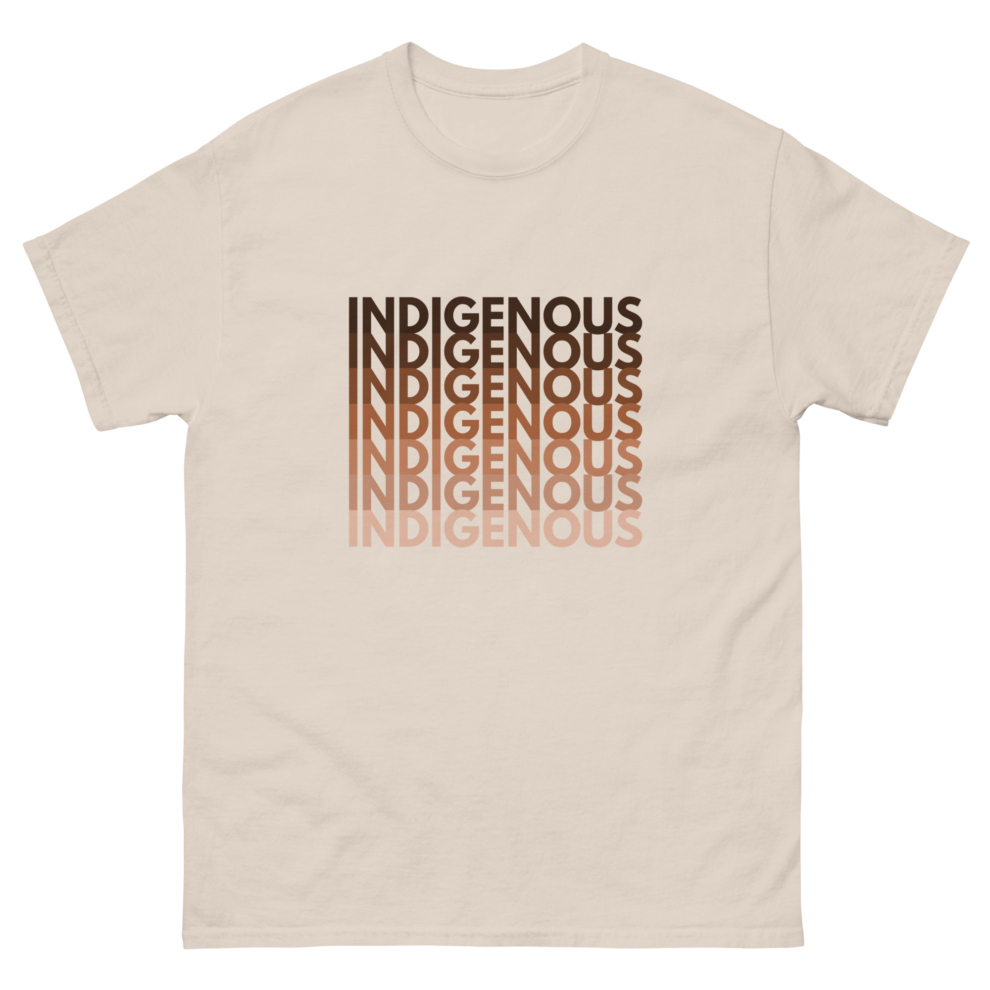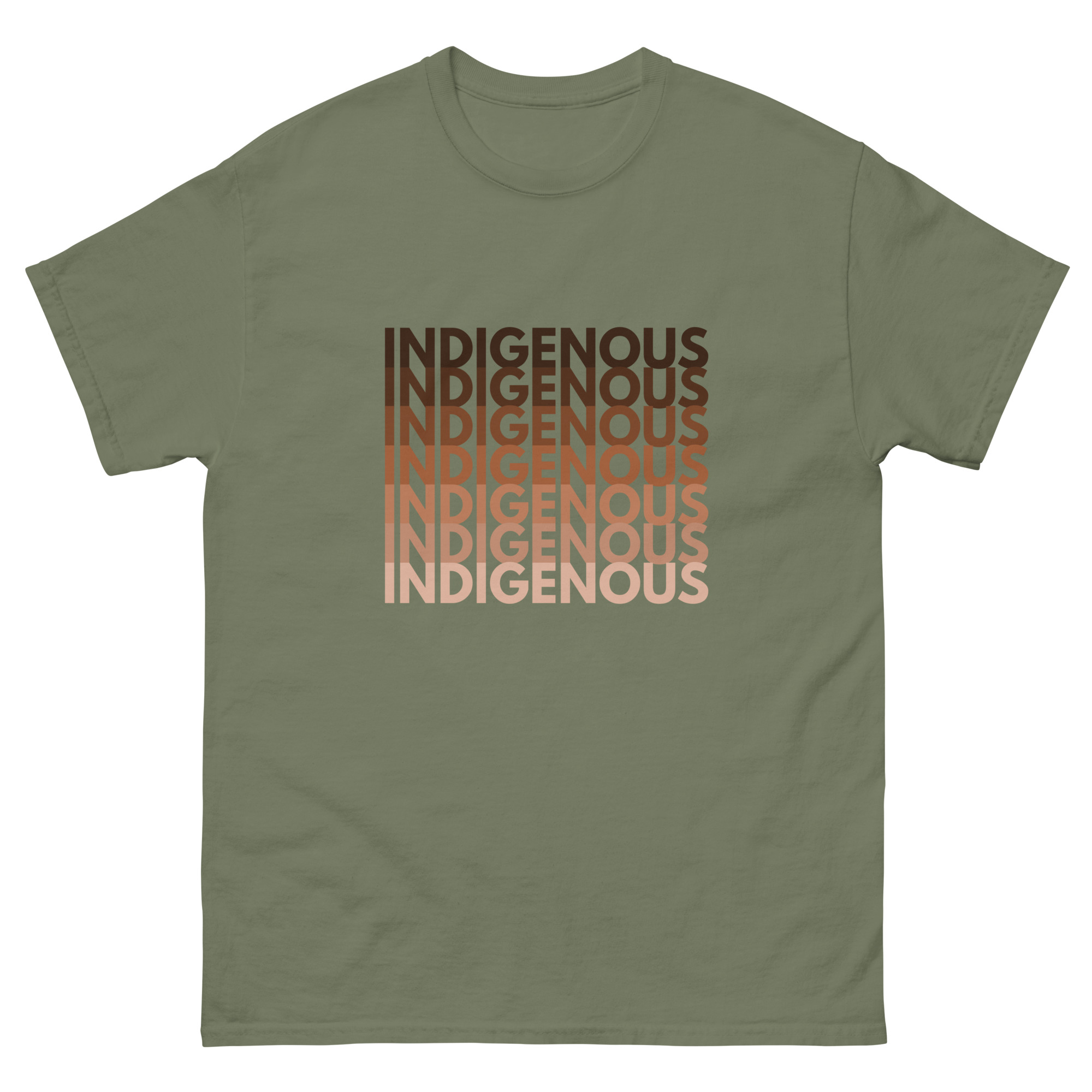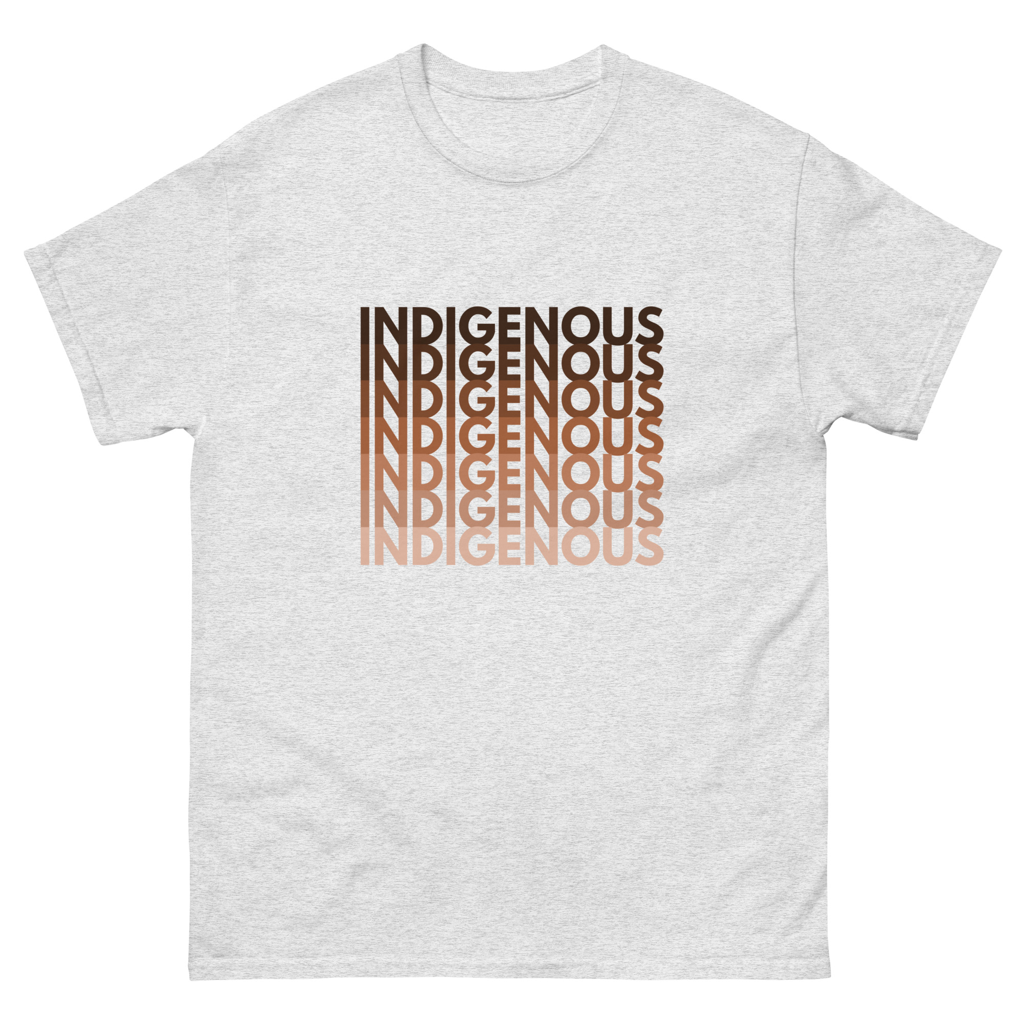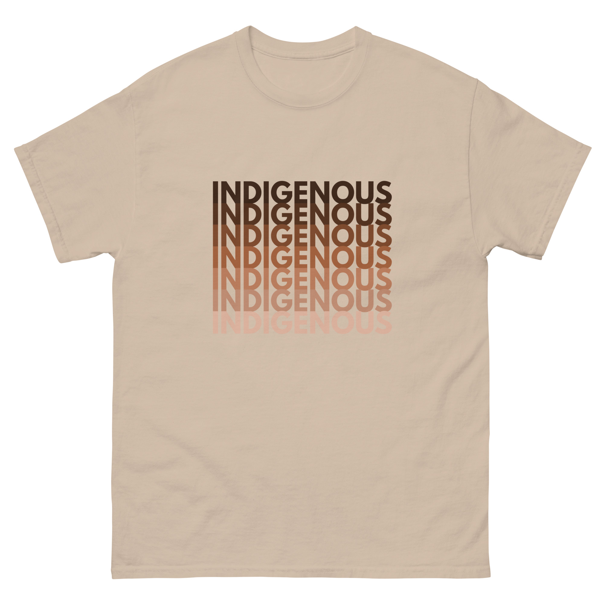 Honor the first stewards of the land with the Indigenous Bold Roots Tee, a powerful gradient design that speaks volumes without saying a word. The stacked typography fades from deep cocoa to soft earth tones—representing the many shades of Indigenous identity and ancestral strength.