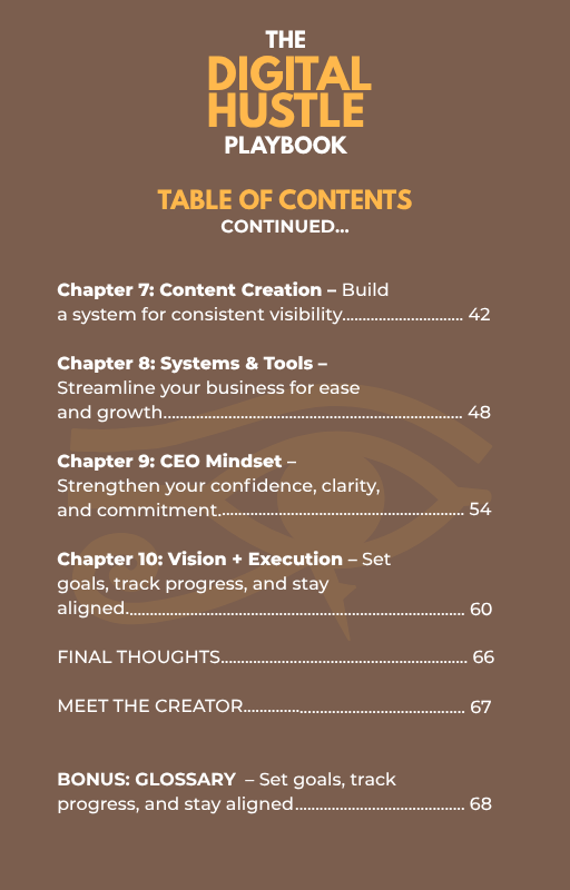 Whether you’re starting from scratch or scaling your empire, this playbook gives you the structure and support to move with clarity, consistency, and purpose.